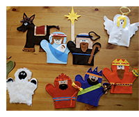 Instructions for making Nativity hand puppets (At Angie Asplund's This & That crafts blog) A pattern for Nativity finger puppets (At craftsy.com) Suggestions for putting on a Nativity puppet play (At Practical Pages)